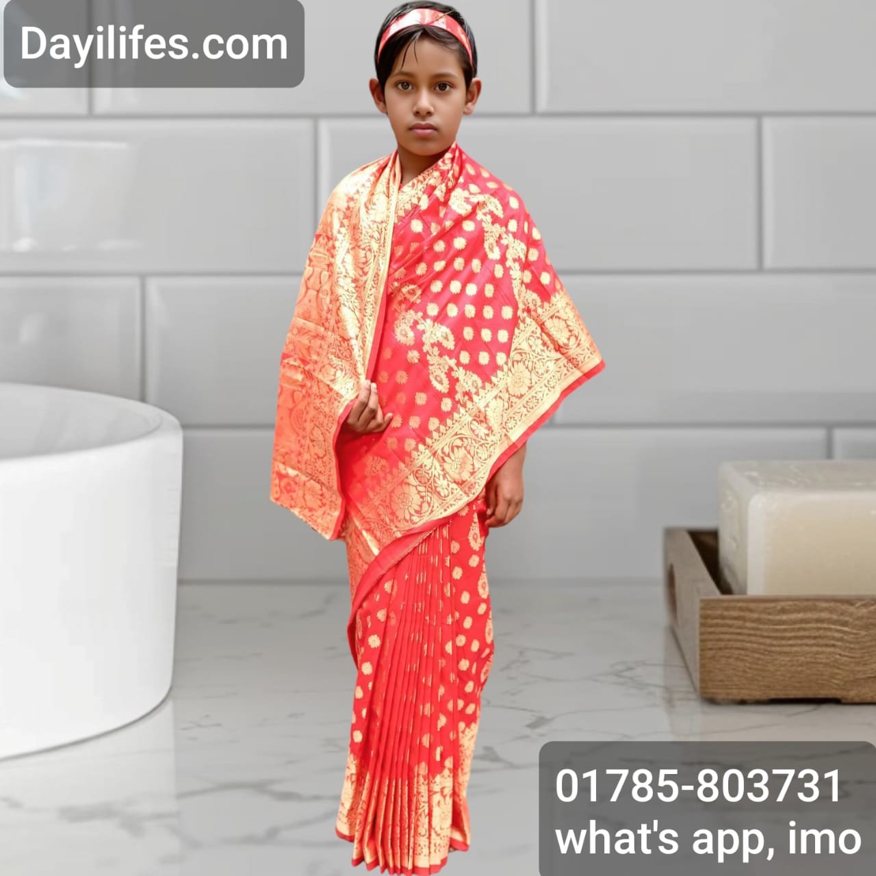- বাচ্চাদের জন্য রেডিমেড কাতান শাড়ি সাথে ব্লাউজের পিস।